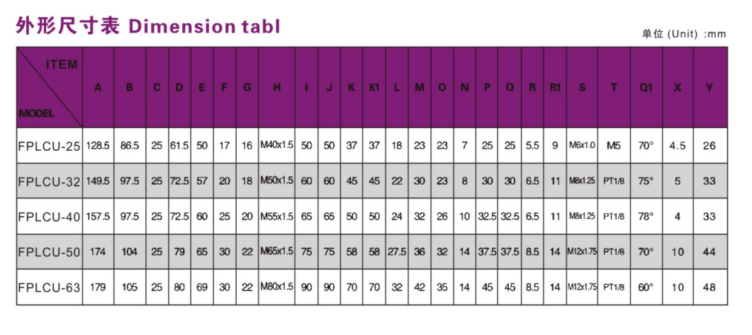 There are five cylinder diameters available for this series of products.&25、&32、&40、&50、&63