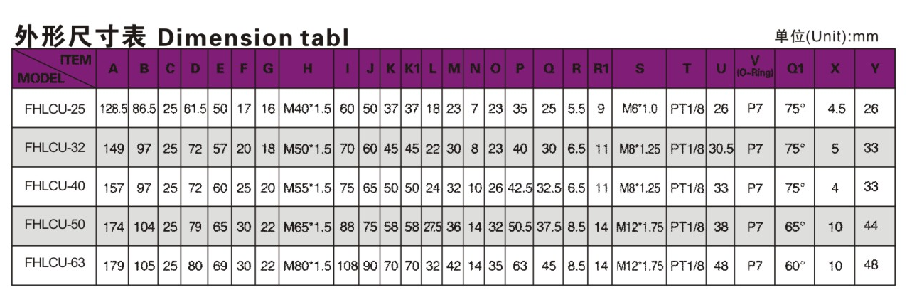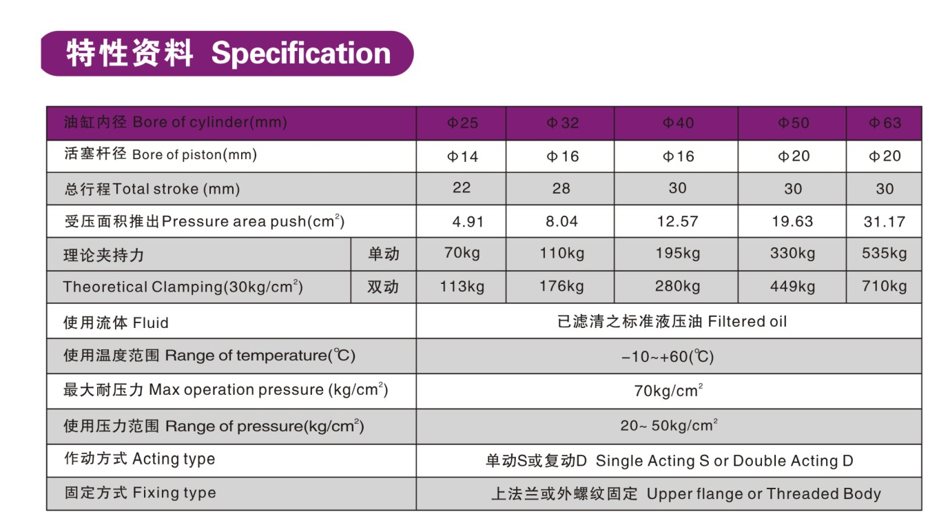There are five cylinder diameters available for this series of products: & 25, & 32, & 40, & 50, & 63.