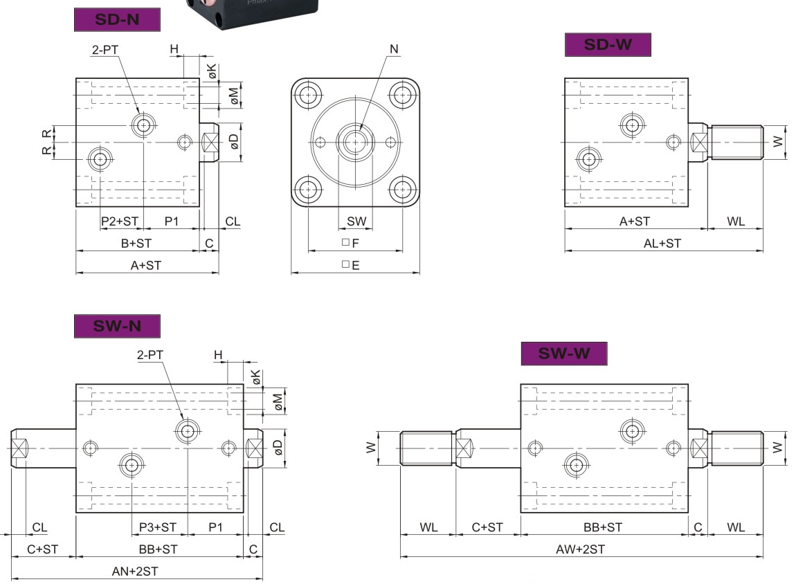 HTN-SD/SW薄型油壓缸軸向單軸/雙軸配管式