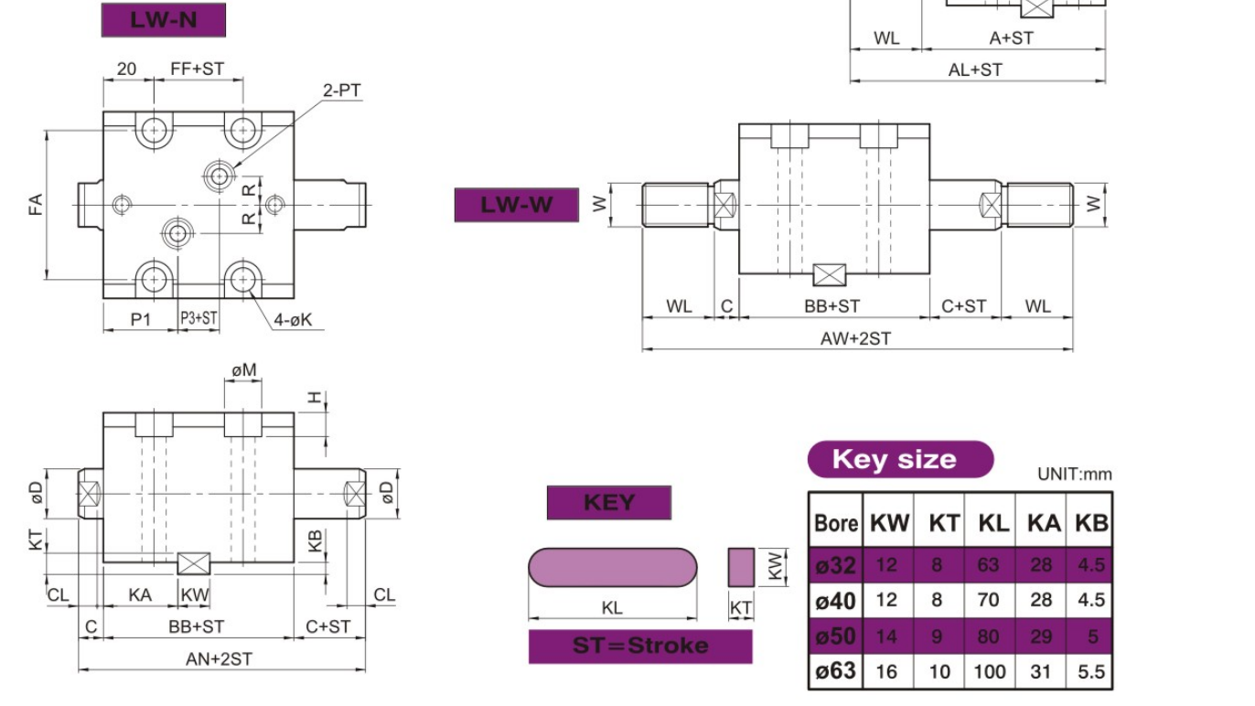 HTB-LA/LW薄型油壓缸側(cè)向單軸/雙軸配管