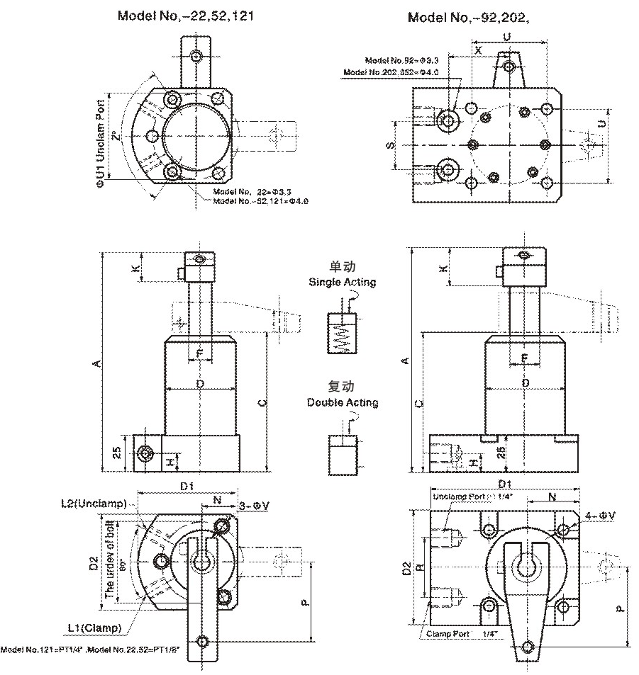 Reciprocating features: clamping and unloading are all controlled by oil circuit. The clamping and unloading of the corner cylinder are controlled alternately according to the direction of the reversing valve. The shape of the press arm is the same as that of the single action.