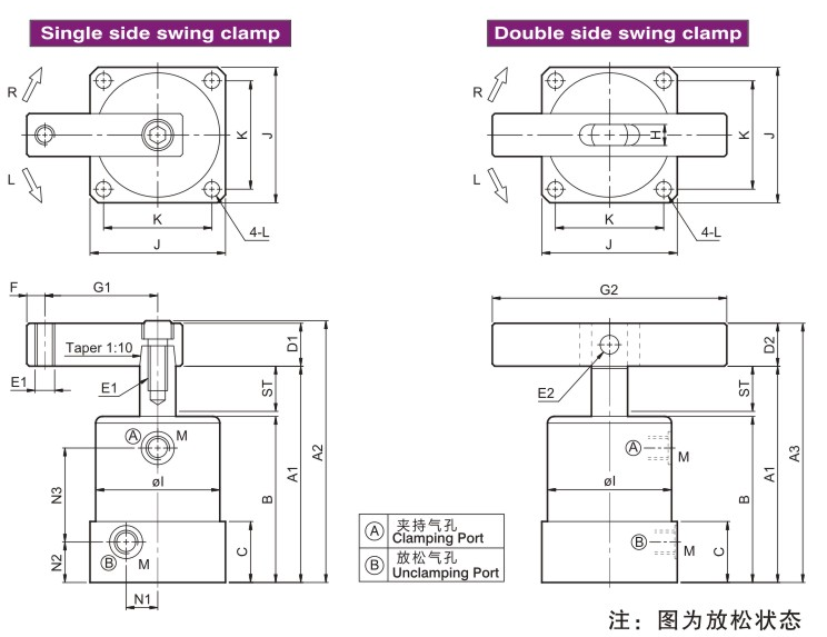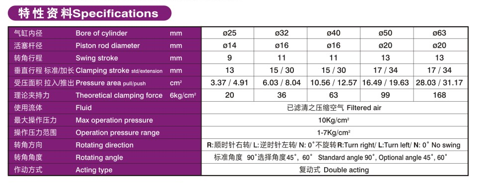 It is recommended that air pressure angle cylinder be used. A. B inlet should be equipped with flow control valve to avoid excessive speed and to avoid clamping workpiece during angle stroke, which may cause damage to cylinder and internal parts.