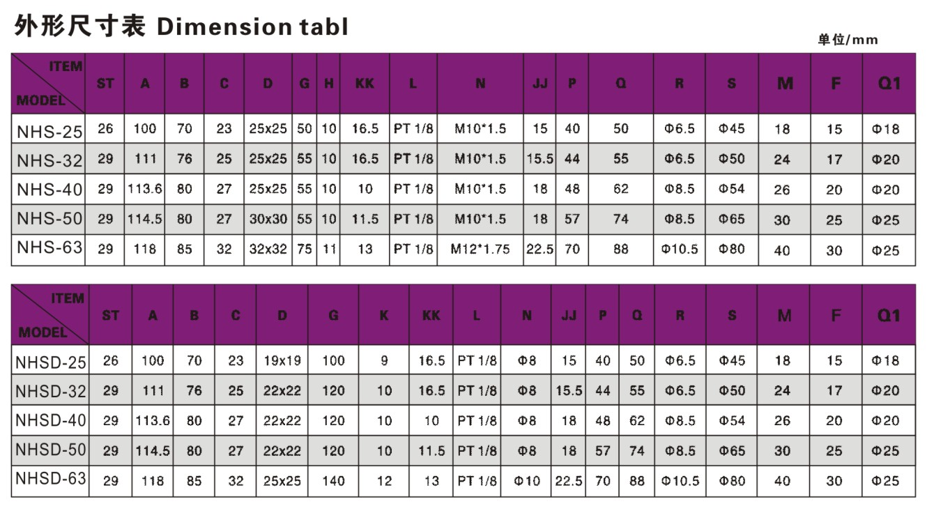 This product has five types of cylinder diameters ranging from - 25 - - 63, and turning angles ranging from 0 - 90.